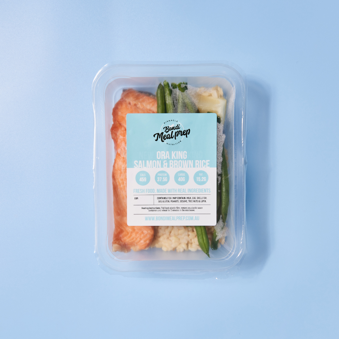 Ōra King Salmon (42.5%)(Contains Fish), Brown Rice (31.9%), Seasonal Vegetable (25.5%), Salt (<1%), Lemon Wedge (<1%).