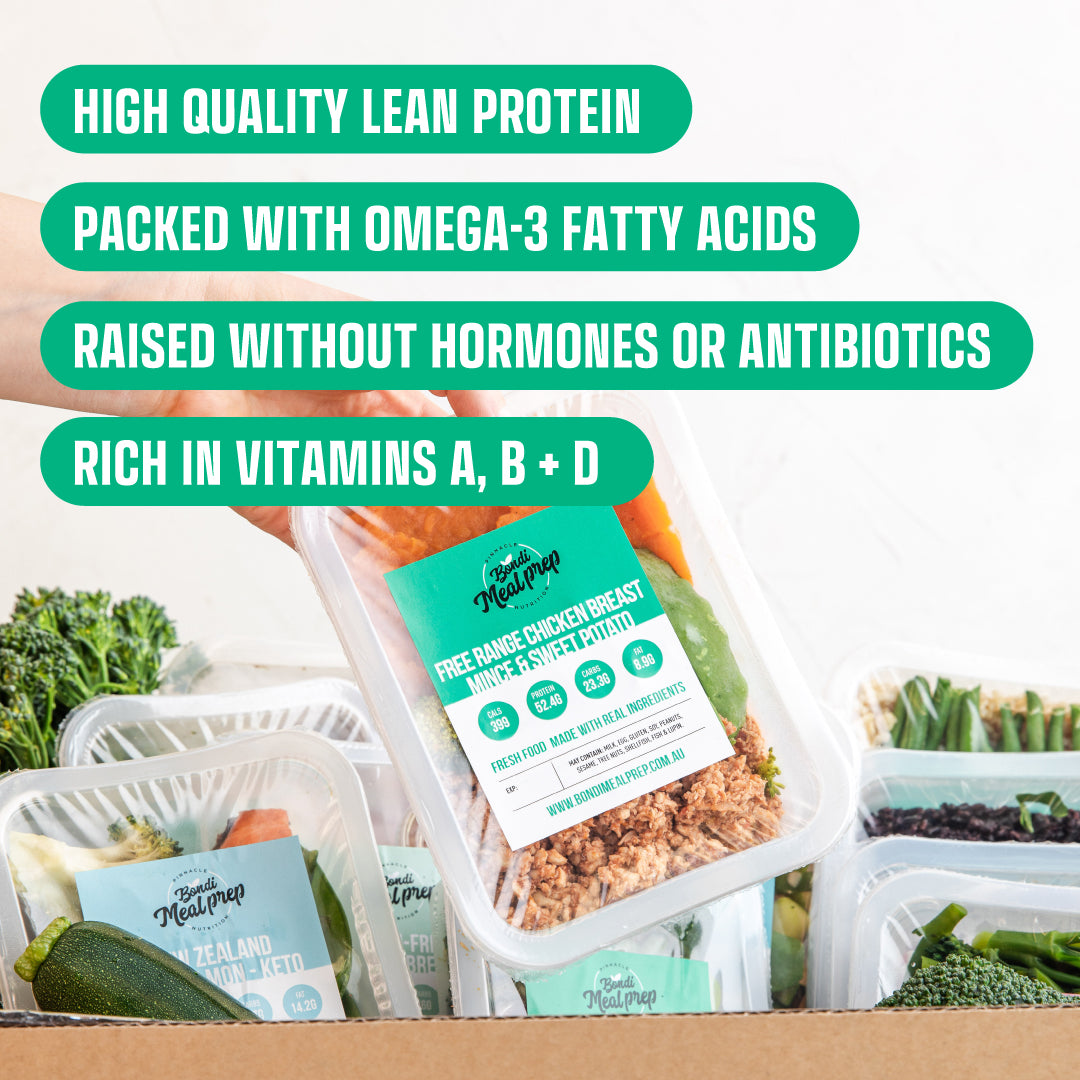 Before consuming any products from Bondi Meal Prep please note that we make a range of dishes in our kitchen and we cannot guarantee any products sold on our website are completely free from any allergen such as milk, egg, gluten, soy, peanuts, sesame seeds, tree nuts, onion & garlic (FODMAP intolerance), shellfish, fish and lupin. While every effort is taken to ensure certain allergens are not included in each meal cross-contamination may occur. Please refer to our disclaimer page for more information.