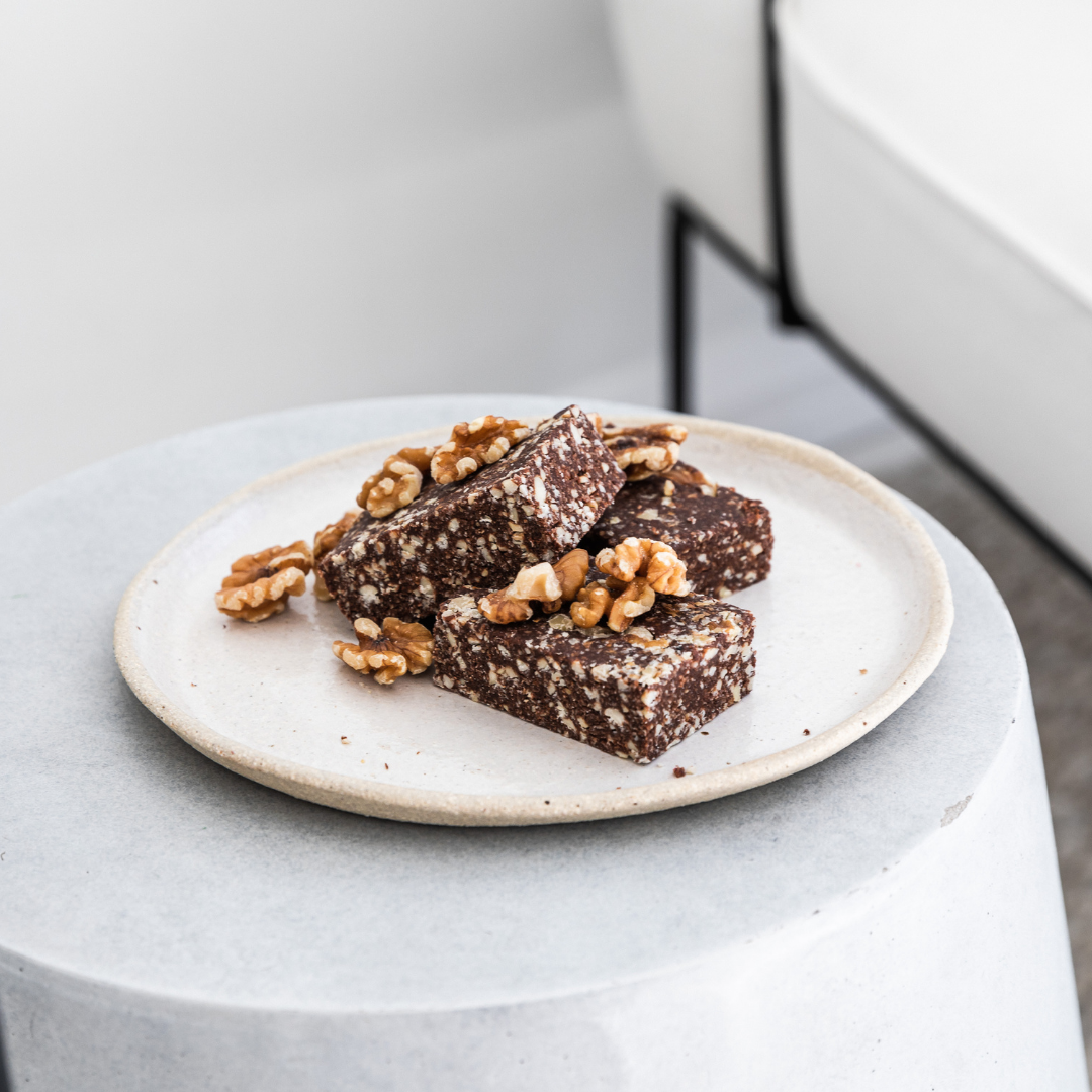 Vegan Choc Walnut Brownie that is butter-free, flour-free, and made with 100% natural ingredients.