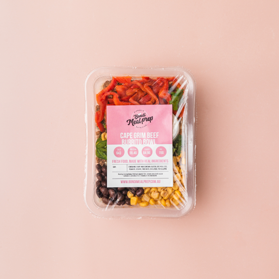 Mexican night at home just got a whole lot easier! Our Grass-Fed Beef Burrito Bowl is packed with rich flavours that’ll keep you coming back for more. Enjoy seasoned grass-fed beef mince served over fragrant cilantro basmati rice, accompanied by a vibrant mix of chili corn, black beans, roasted capsicum, and a sprinkle of light cheddar cheese.