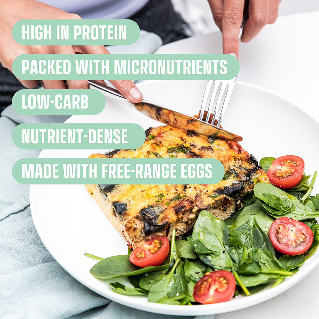 How do you like your eggs in the morning? We’re all about baked, veggie-packed, flavour-rich frittatas! Our Mediterranean Frittata is perfect any time of day—breakfast, lunch, or dinner. Made with free-range eggs, zucchini, eggplant, mushrooms, potatoes, capsicum, cheese, and a sprinkle of oregano for that delicious flavour boost.
